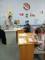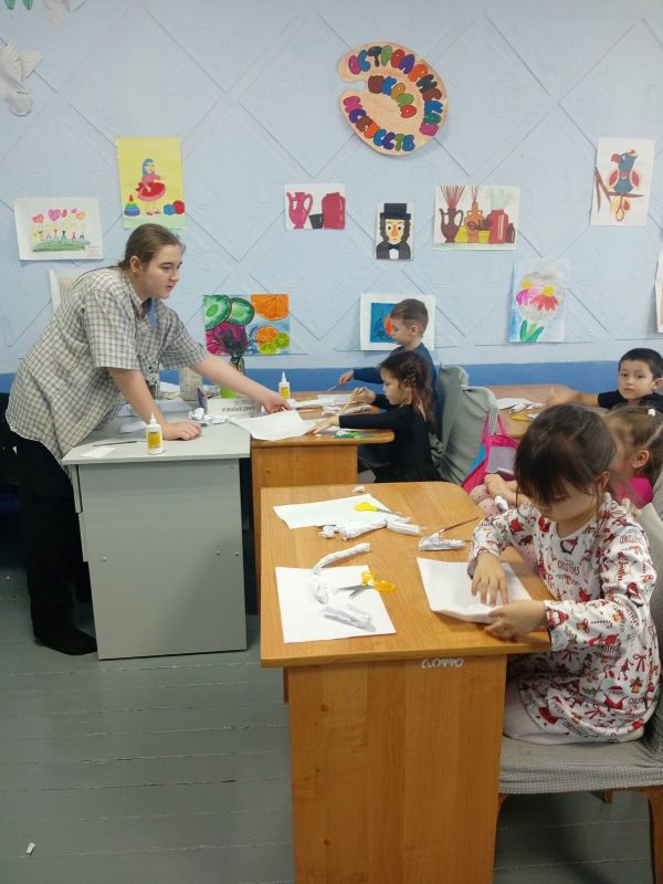Мастер-класс провел ученик выпускного класса Байкин Павел. На протяжении трех занятий малыши с энтузиазмом мастерили амулеты. Под руководством Павла, учились скатывать бумагу, склеивать детали.